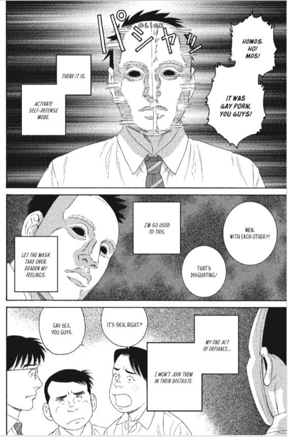 Once Sora’s mask begins to fall away and the people in his life learn who he truly is, the boy begins to take the steps needed to accept himself and he finds acceptance from others. Mr. Amamyia and his story show Sora that it’s never easy to be a gay man, whether you’re a teenager or even older than that. While Mr. Amamiya seems to have it all figured out now (hint: even he doesn’t,) his past shows Sora the cost of holding back on telling anyone even longer than he already has. So Nao is the first and while it takes her a bit to adjust, her and Sora’s friendship grows even stronger. As his best friend accepts who he is, that gives him the strength to say “I’m gay” to even more people. He doesn’t get to be open with everyone; his secret crush remains secret even at the end, but by the end of the book, Tagame shows a young man who is ready to be honest with himself and with the world.