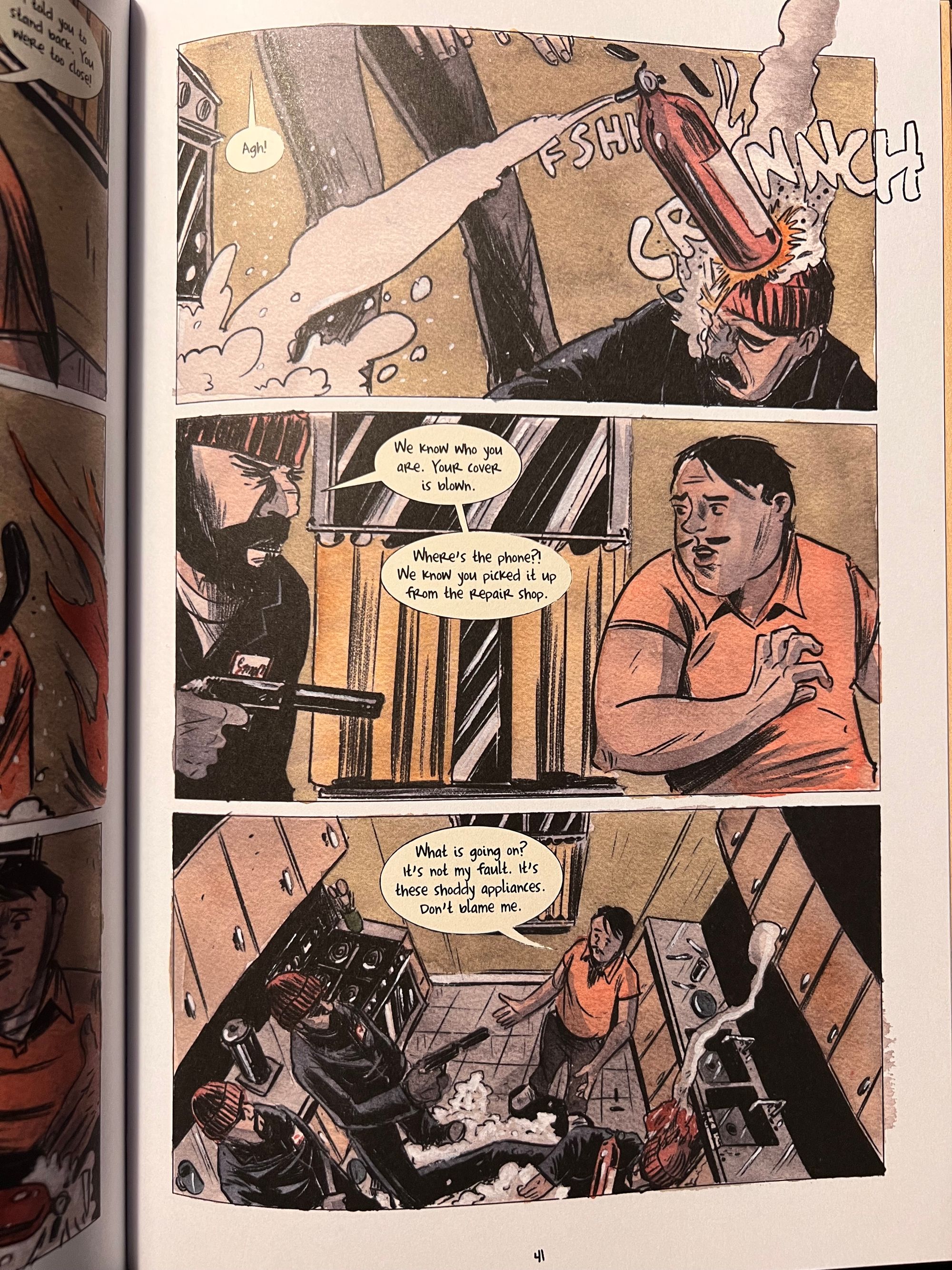 Kindt’s artwork is very focused and straightforward here. There are few, if any, real visual tricks or diversions here because Jay doesn’t know any tricks or spycraft. If any of the real spies in this story were the main character, Kindt would be doing all kinds of visual magic and misdirection like he did in Mind MGMT. We see it here a few times as Jay encounters true spies; it’s used to showcase their specific sets of skills. But as Jay has no skills, Kindt focuses on his posturing and his pride. In Mind MGMT, Kindt was convincing you that you had to watch his right hand even as his left was picking your wallet to get to your I.D. or credit cards. Here we’re watching the spies trying to pick Jay’s wallets and him somehow either with skill or luck, evading their nimble fingers.