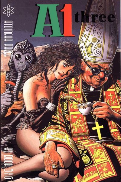 Most of that comes out in the story (maybe not the “former” part for either of them,) it’s the sheer dissonance of this couple being together that catches your attention. In typical Bolland fashion, the Bishop is drawn in his vestments in wonderful detail and she in a tight, short black skirt, sitting together on a couch, bored as any urban couple could be on a typical night. In the two 3-page stories in A1, the couple looks to escape that civilized boredom, first with a road trip and then by throwing a party.