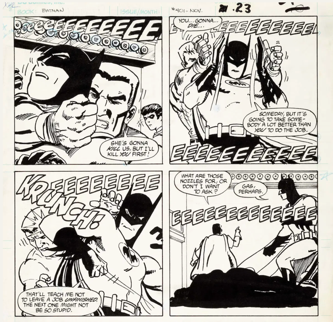 Taking inspiration from creators like Alex Toth, Jim Steranko, Joe Kubert, and even Frank Miller, Thriller is von Eeden in full swing, putting out artwork that’s at once bold and graphic and scratchy and intimate, with every line an expression of where he was at personally at the time. In a 2019 interview, he memorably referred to the run as containing “some of the very BEST, and the very WORST work of my career,” adding that it was “indeed a complete expression of myself… it’s just that the ‘self’ that I was back then wasn’t exactly a HAPPY one.” Such unhappiness for the artist wasn’t necessarily visible to the reader, though; instead, they were more likely to be blown away by some of the boldest, more powerful artwork published by DC since Kirby’s New Gods was in full flower.